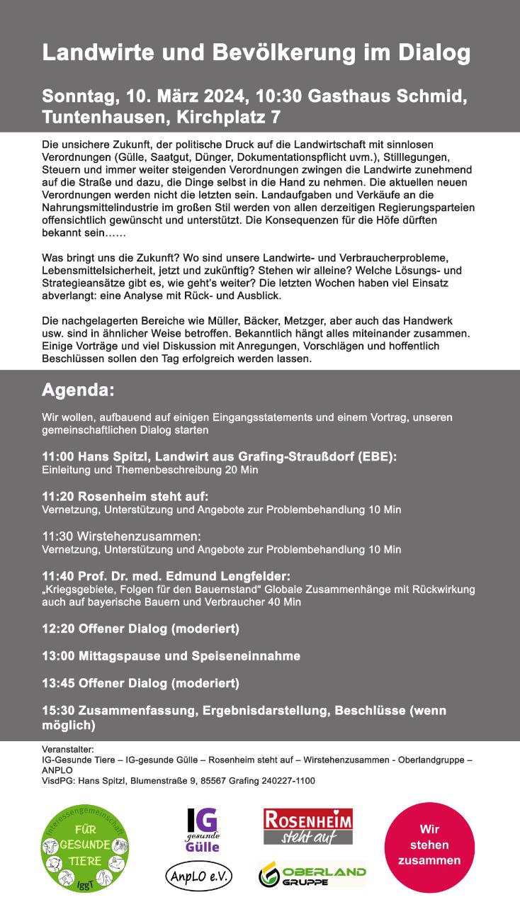 IG-Gesunde Tiere – IG-gesunde Gülle – Rosenheim steht auf – Wirstehenzusammen - Oberlandgruppe – ANPLO